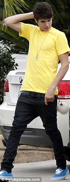 17-year-old Bieber ditched his dirty blond hair just days after bringing back his signature side-swept hairstyle at the Consumer Electronics Show in Las Vegas. When he was photographed with his darker new hair, the pop sensation was wearing a bright yellow T-shirt, baggy jeans and a pair of blue sneakers.