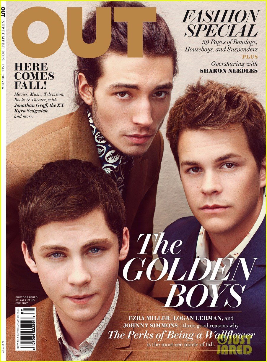 The Perks of Being A Wallflower stars Logan Lerman, Ezra Miller, and Johnny Simmons take the cover of Out magazine’s September 2012 issue.