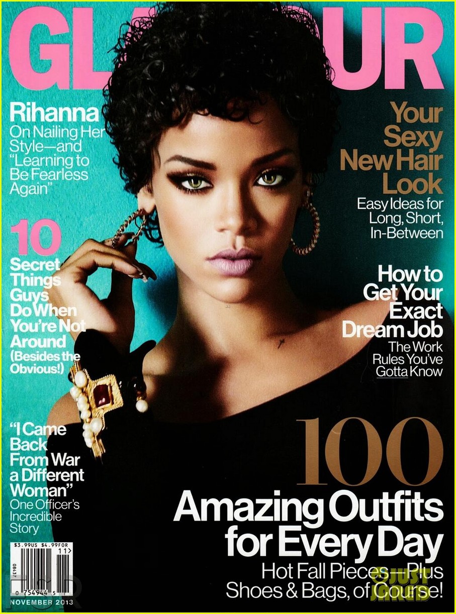 Rihanna rocks her short curly hair on the cover of Glamour‘s November 2013 issue.
