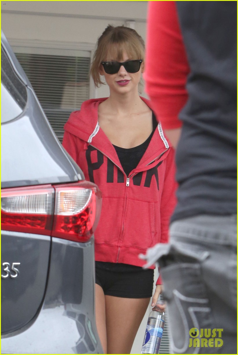 Taylor Swift rocks all pink while leaving the gym after a workout on Sunday morning (October 27) in West Hollywood, Calif.