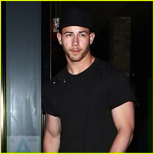 Nick Jonas wears an all black and white outfit while leaving dinner on Friday night (May 4) in West Hollywood, Calif.