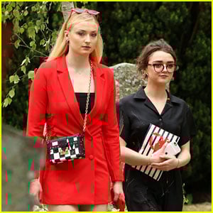 Sophie Turner and Maisie Williams walk side-by-side while arriving together for Kit Harington and Rose Leslie‘s wedding on Saturday (June 23) in Aberdeen, Scotland.