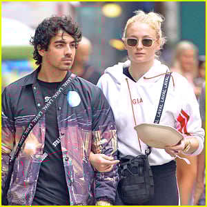 Sophie Turner holds on close to fiance Joe Jonas as they grab lunch to go from Sweetgreen restaurant on Thursday afternoon (September 20) in New York City.