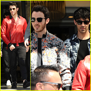 The JoBros are also pictured leaving the Corrinthia Hotel in London, England on Thursday morning (May 30).