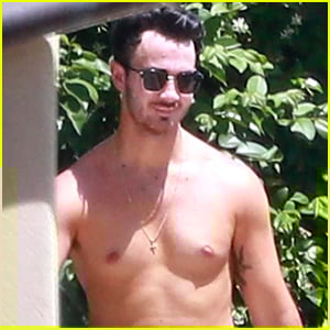 Kevin Jonas goes shirtless on a hot day in Avignon, France on Thursday afternoon (June 27).