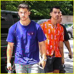 Nick Jonas and his older brother Joe Jonas head out for lunch together on Monday afternoon (July 22) in the Soho neighborhood of New York City.