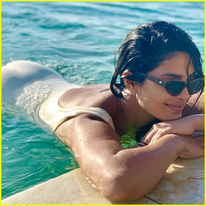 The 36-year-old actress took to Instagram on Sunday (July 7) to share a couple steamy photos lounging by the pool – taken by Nick Jonas.