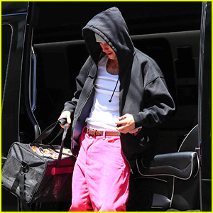 Justin Bieber holds on to a cat carrier while arriving for a workout in Los Angeles over the weekend.
