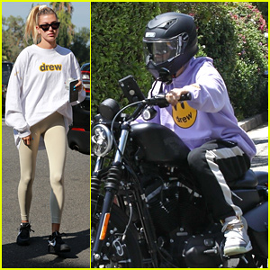 Justin Bieber goes for a spin on his motorcycle on Tuesday afternoon (August 6) in Los Angeles.