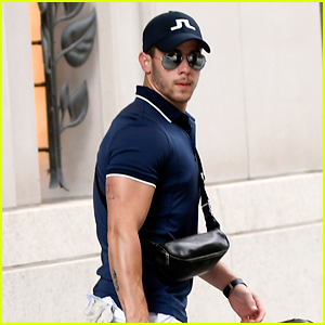 Nick Jonas shows off his buff muscles while heading out to play a round of golf on Saturday morning (August 17) in New York City.