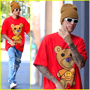 The 25-year-old singer wore a red Drew House t-shirt with a teddy bear on it.