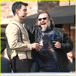 Jack Black lets out a big laugh while filming a special segment with Joe Jonas on a sightseeing tour bus in Los Angeles on Tuesday afternoon (January 14).