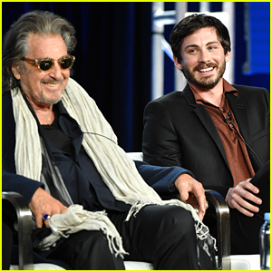 Logan Lerman laughs it out with Al Pacino during the 2020 Winter TCA Tour on Tuesday (January 14) in Pasadena, Calif.