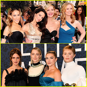 The photos show Cynthia walking arm-in-arm with her co-stars Sarah Jessica Parker, Kristin Davis, and Kim Cattrall. Below it, Little Women‘s Eliza Scanlen, Saoirse Ronan, Emma Watson, and Florence Pugh can be seen in the same pose with similar hairstyles and outfits!