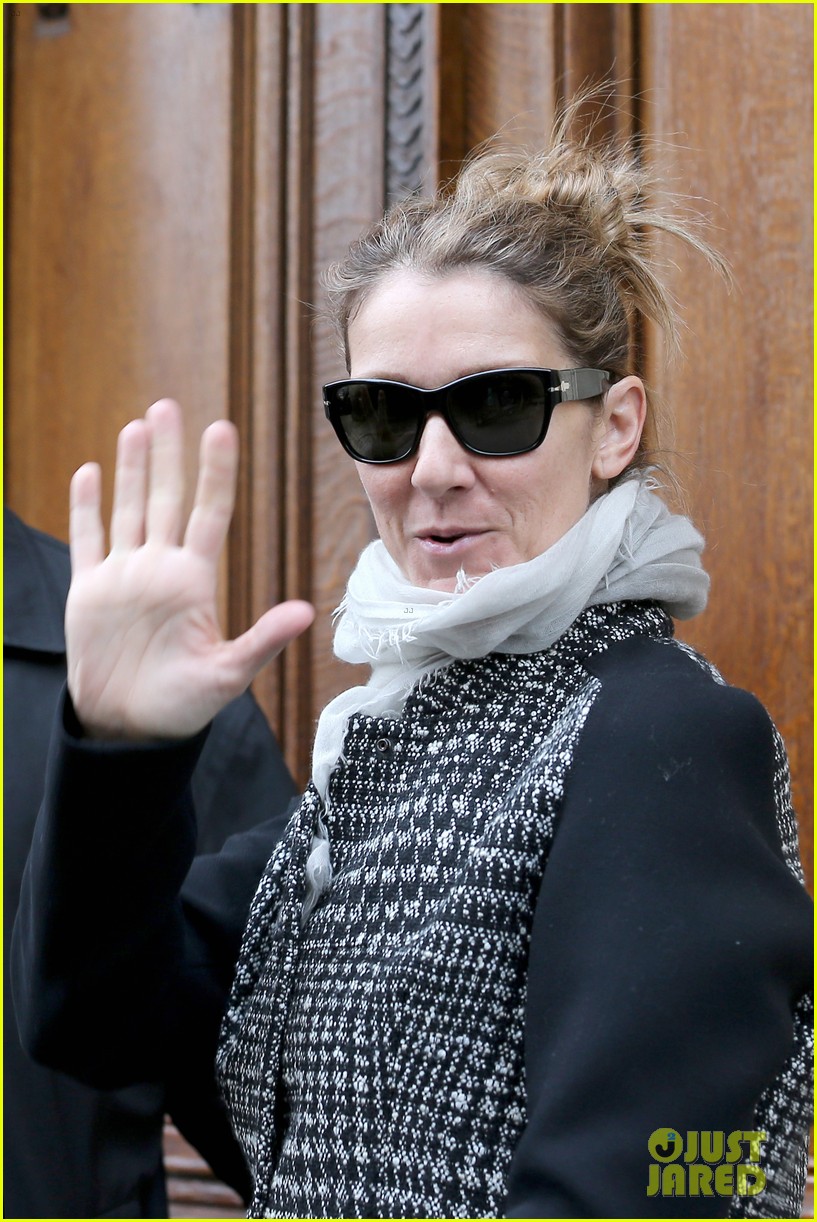 Celine Dion gives a thumbs up as she heads into an ear, nose, and threat specialist’s office on Tuesday (November 20) in Paris, France.