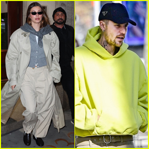 Meanwhile, the model and Rhode Beauty founder looked chic in a tan trench coat with matching pants and a gray cardigan while out and about. She finished off her look with a pair of sunglasses and wore her hair down.